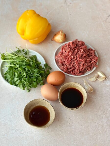 - 500 g Schweinehackfleisch (alternativ Huhn oder Rind)